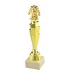 Złota statuetka karate o nowoczesnym kształcie. Powierzchnia wykończona teksturowanymi elementami przestrzennymi. Całość osadzona na eleganckim marmurowym postumencie, tworzący prestiżowe trofeum symbolizujące pasję i sportowe zwycięstwo.